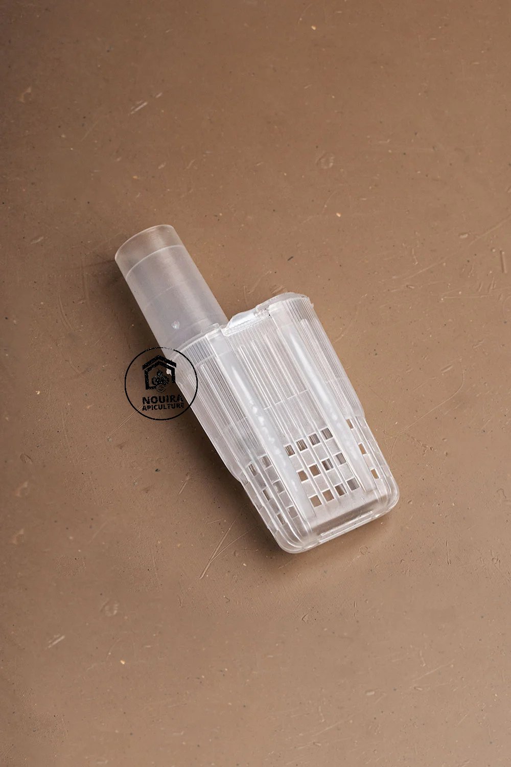 Cette petite cage permet à la reine de s’habituer à ses nouveaux congénères. Bloquez la petite sortie avec le bouchon fourni et bloquez la grande sortie avec de la pâte à sucre. Une fois la pâte à sucre épuisée, la reine sera habituée aux humains.