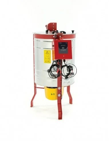 Le cœur de cet extracteur est sa cage tangentielle capable de contenir jusqu’à 8 cadres de hausse Dadant ou 4 cadres de corps de formats variés (Dadant, Langstroth, Warré, Voirnot). La vitesse de rotation se contrôle aisément grâce à un potentiomètre manuel, vous permettant d’adapter la force centrifuge pour une extraction douce qui préserve les cadres. Le fond conique de la cuve en inox assure un écoulement total du miel vers la vanne, ne laissant aucune goutte derrière.